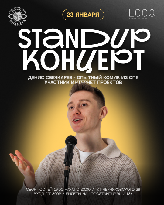 Денис Свечкарев – опытный стендап-комик из Санкт-Петербурга, участник Ютуб-шоу «Давай замутим».
