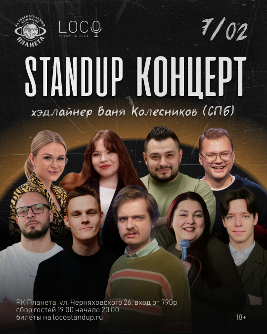Опытные комики Калининграда и хэдлайнер из Санкт-Петербурга Ваня Колесников, соберутся на одной сцене, чтобы провести для вас этот вечер комедии.