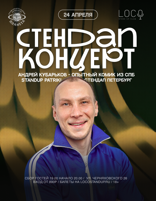 Андрей Кубарьков — народный комик из Санкт-Петербурга, участник проектов «Стендап Петербург» на YouTube и StandUP Patriki.