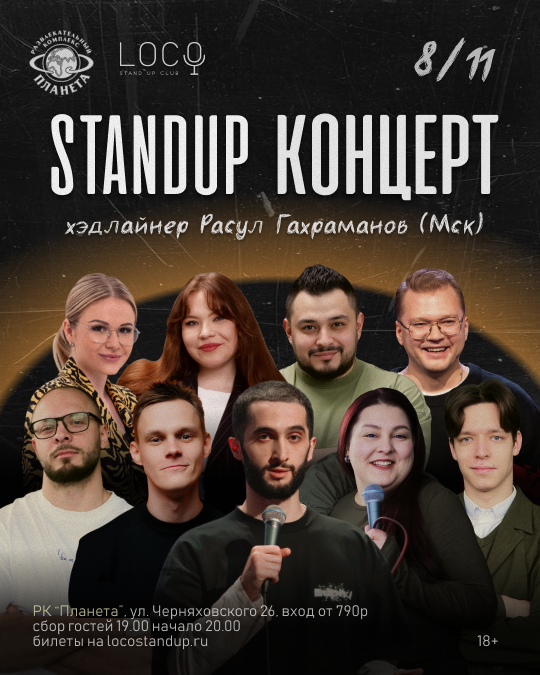 В этот вечер для вас выступят опытные комики Калининграда и хэдлайнер вечера — Расул Гахраманов: участник шоу «Открытый Микрофон» на ТНТ, Roast Battle на LABELCOM, а так же «open mic» в VK